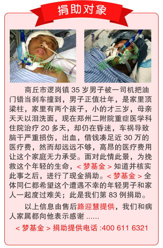 商丘35歲車禍傷者獲得捐助